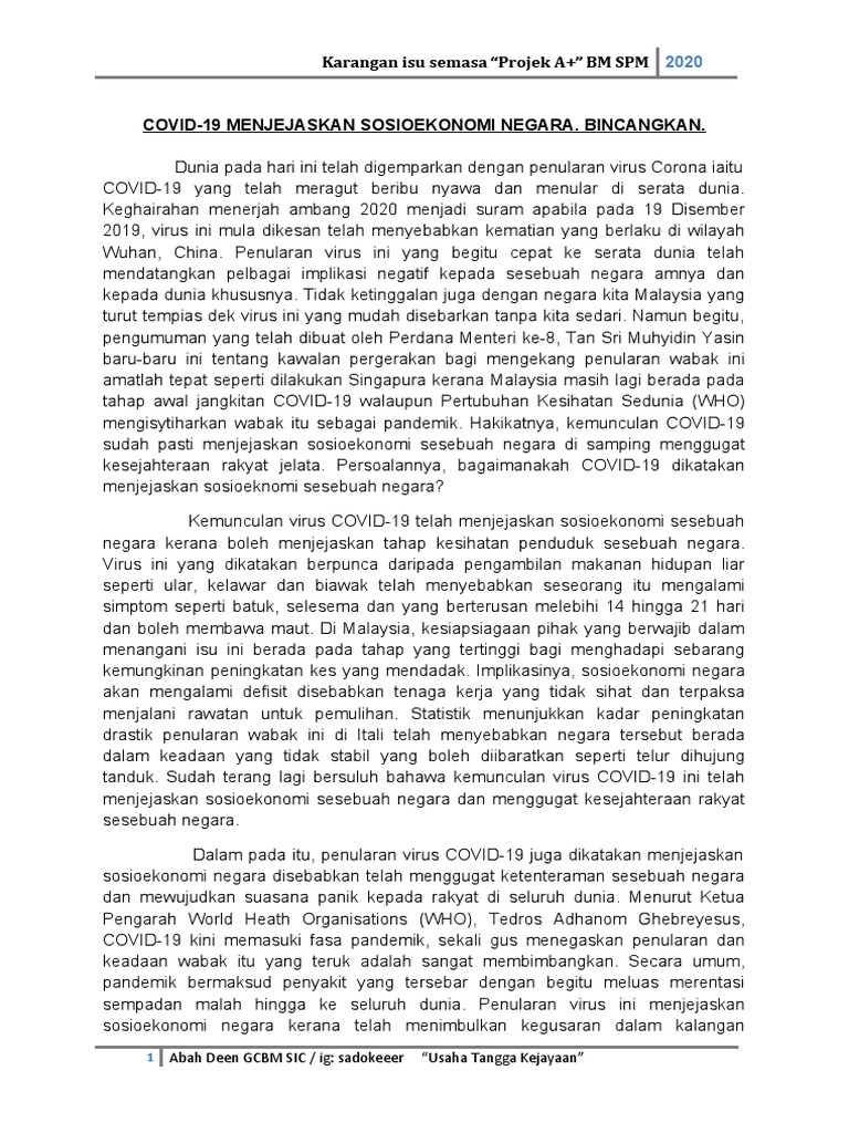 Bahasa Melayu Karangan Covid 19 Pdf